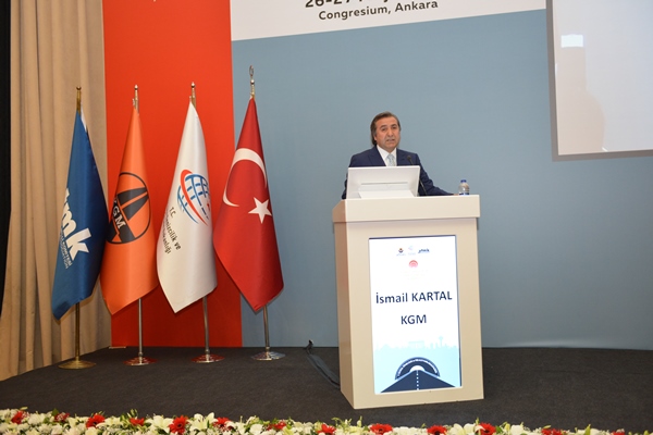 Karayolları Genel Müdürü ve Yollar Türk Milli Komitesi Yönetim Kurulu Başkanı İsmail KARTAL, Açılış Töreninde yaptığı konuşmasına “Tüneller, altyapı sistemi içinde geçmişten bugüne kadar çok yaygın olarak kullanılmış, gelişen teknoloji ve yapım metotları sayesinde özellikle yolların geometrik standartlarının yükseltilmesi açısından vazgeçilmez sanat yapıları haline gelmiştir. Ülkemizde teknolojinin gelişmesiyle birlikte tünel yapımında büyük aşama kaydedilmiştir. Tünellerimizin toplam uzunluğu % 442’lik artışla 50 km’den 270,8 km’ye ulaşmıştır. Günümüz tünel teknolojileri kullanılarak günde 250 m karayolu tüneli yapılmakta olup 2023 yılına kadar yol ağımızda toplam 700 km uzunluğunda 470 adet tünelin trafiğe hizmet vermesi hedeflenmektedir.” diyerek başladı.